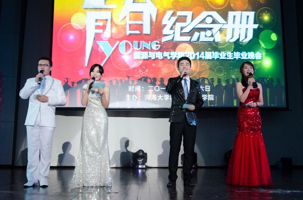晚会表演精彩纷呈。风动专业带来的开场街舞《红日》尽显青春活力,点燃了现场的火爆气氛;10、11级国防生大合唱铿锵有力,尽显河海军魂;由风动、电气、热动专业的周韩子、刘诗雨、刘肖廷、李玮同学原创的诗朗诵《河海赋》,文辞优美,情真意切,表达了河海学子对母校崇高的敬意、满腔的热爱与深切的祝福,成为晚会的最亮点;电气专业女生们的舞蹈《咏春》曼妙多姿,展现了能电女生的柔美灵秀;热动、自动化专业的原创小品《招新趣事》、《与青春有关的日子》诙谐幽默,演绎出了同学们大学生活的千姿百态,也表达了临近毕业对学校与学院的不舍与深爱;由电气专业徐书洋同学编剧,热动专业管陈南同学导演的舞台剧《蓝色毕业季》演技绝伦,深刻细腻表现了同学们在大学生活中的感情生活、宿舍生活、学习生活,表达了同学们在临近毕业时所面临的两难选择与内心的挣扎,成为全场表演剧的最高潮;研究生的歌曲《壮志雄心》、风动专业的改编歌曲《青春的日子》、热动、电气专业的吉他弹唱《启程》、各个专业的歌曲串烧《彼时年少》纷纷唱出了同学深情,以及对于未来的美好向往与坚定信心;2010级辅导员孙瀚和周能萍老师合唱的《光阴的故事》表达了辅导员对于学生的感情与祝福。随着晚会落下帷幕,离别的惆怅都化为了对未来的热情、祝福与希望。整台晚会彰显出了能电学子的青春与活力、梦想与追求。
