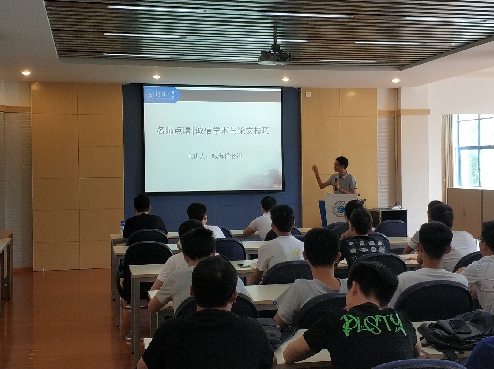 为了解惑黄色漫画 研究生学术论文写作及提升论文写作能力, 2018年6月27日,由黄色漫画 研科协举办的以“名师点睛”廉洁诚信学术论文写作的专题讲座在黄色漫画 江宁校区勤学楼5208顺利举行。本次讲座专门针对研究生诚信学术论文写作与发表而举办,为此我们特意请来了臧海祥老师为大家指点迷津。