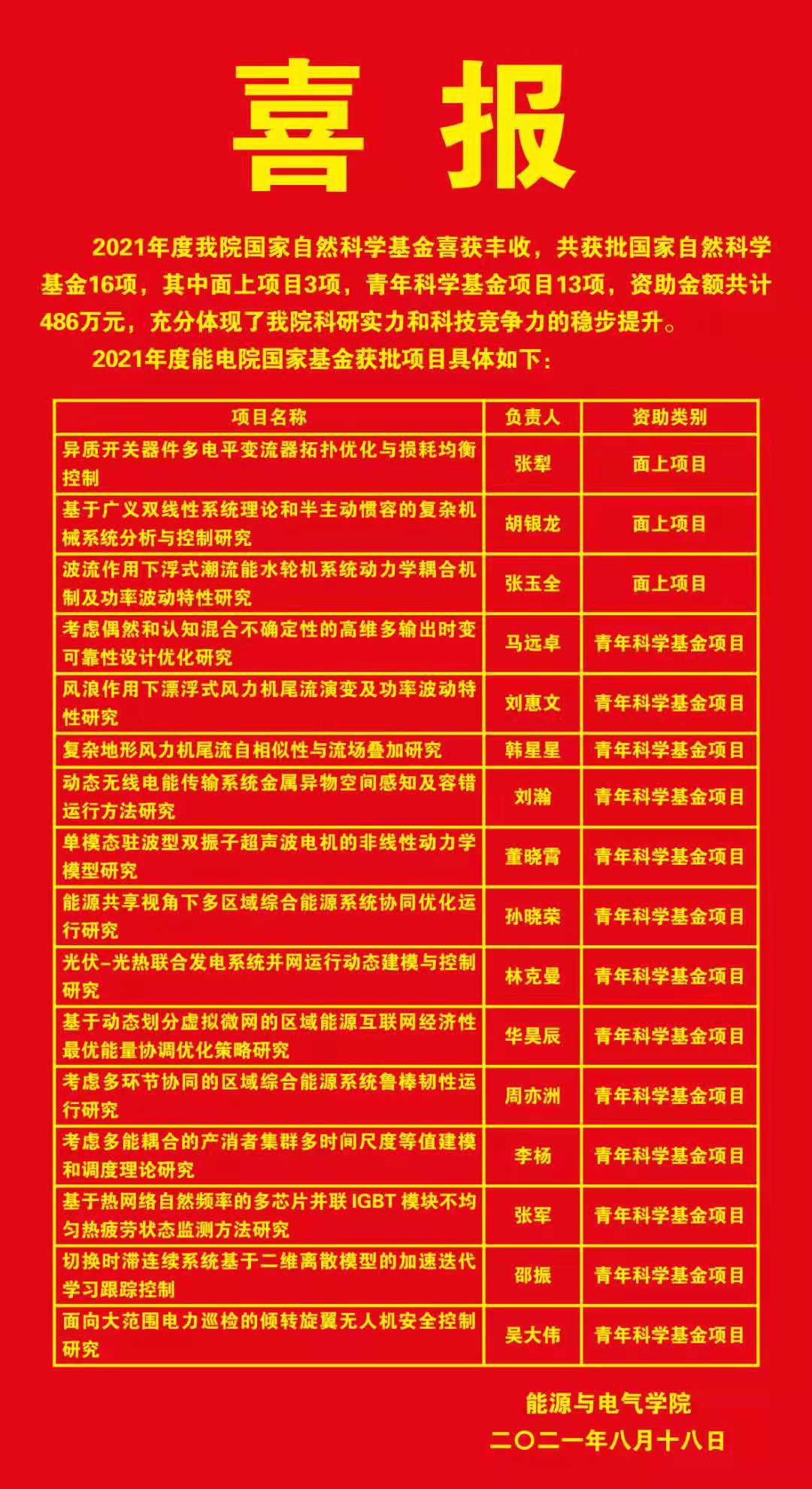 喜报-2021年度黄色漫画 国家自然科学基金喜获丰收