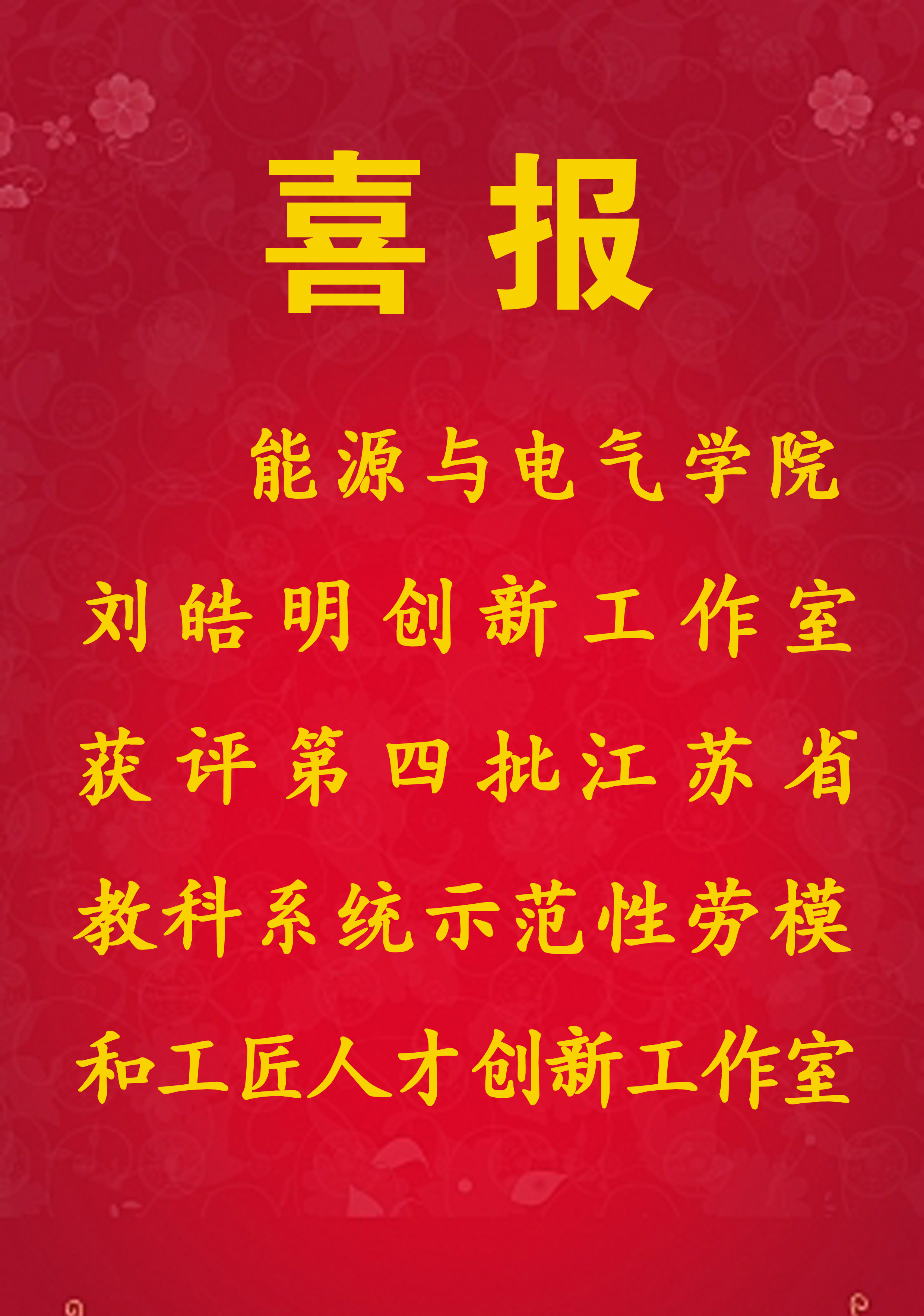 喜报:刘皓明创新工作室获评第四批江苏省教科系统示范性劳模和工匠人才创新工作室