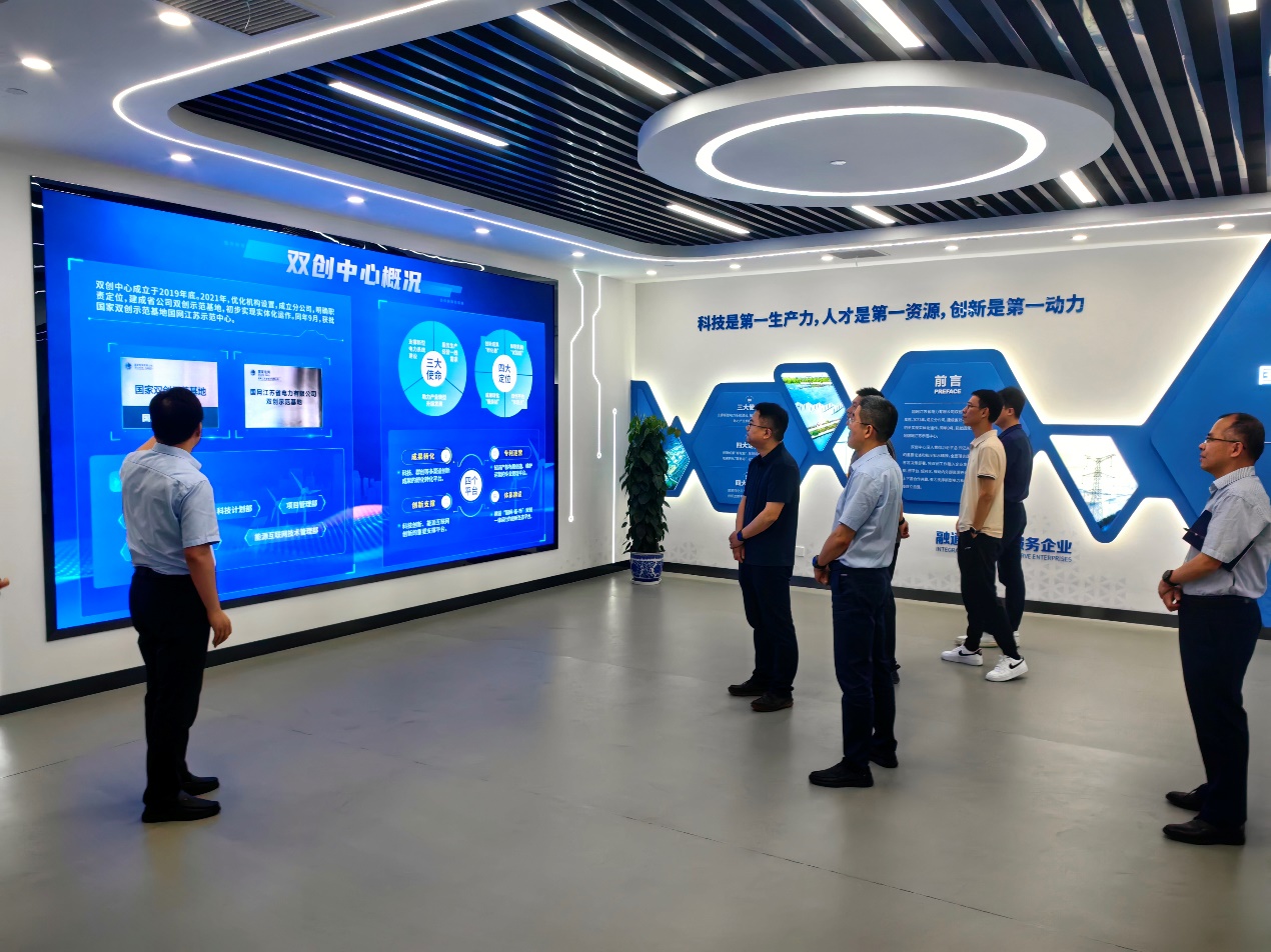 张军主任向学院表示了热烈的欢迎,介绍了双创中心的发展历程、主要业务、科技(孵化)项目及成果转化合作情况等,并从电力行业人才需求的角度对学院在科技创新、成果转化应用等方面的工作提出了宝贵的建议。张犁院长对双创中心的热情接待表示了感谢,介绍了学院基本情况、科研方向和师资队伍等,并提出了双方围绕新型电力系统建设和双碳目标,在科技创新、成果应用与孵化推广方面的合作设想和计划。双方参观了国家双创示范基地国网江苏示范中心,并就科研项目的持续合作与应用、人才的高质量培养等进行了交流讨论。