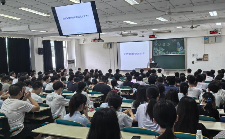 互动环节中,同学们踊跃提问,郑教授就实习机会、毕业要求和就业前景等问题予以细致解答,并鼓励大家专注科研、积累成果,有效缓解了新生对学业与发展的焦虑。整场讲座为新生指明了学术方向,增强了科研信心,奠定了坚实的起点。