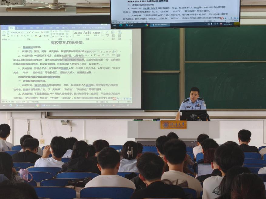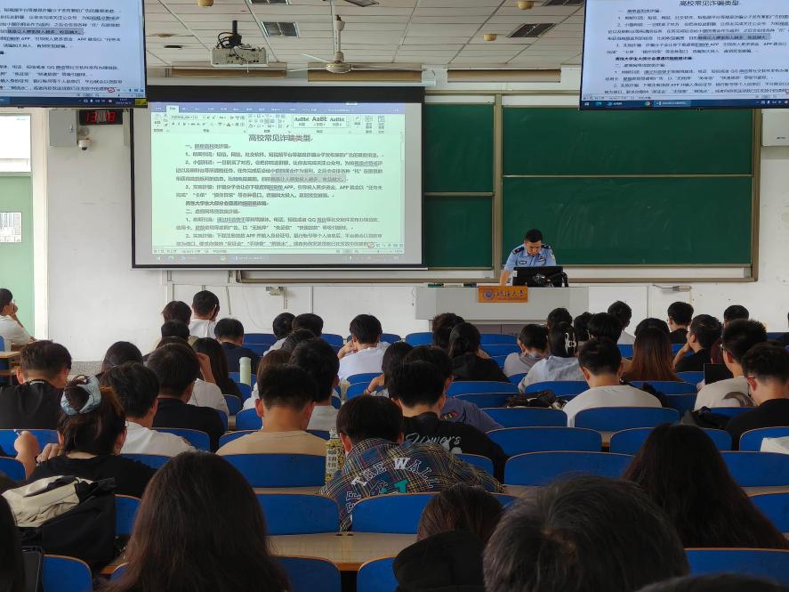 活动中,民警结合高校中高发的诈骗类型,详细剖析了刷单返利、虚假网络贷款、冒充电商客服、冒充熟人、虚假购物服务、网络游戏交易、机票退改签以及小众聊天软件诈骗等八大类诈骗手法。民警通过真实案例,揭示了诈骗分子如何利用学生群体的心理特点实施诈骗,并针对男女生可能遭遇的不同诈骗类型进行了重点提示。