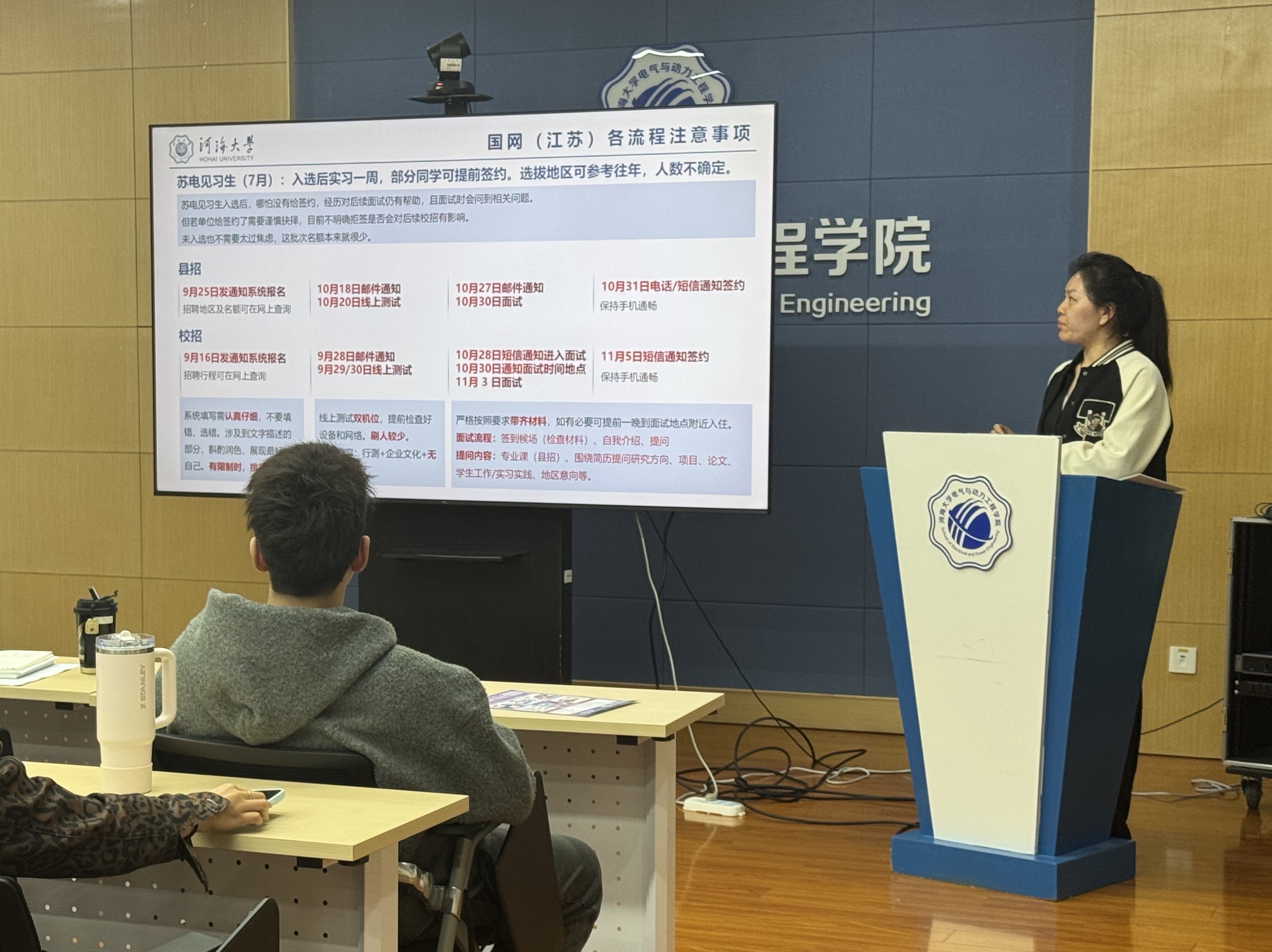 本次活动邀请了2023级优秀毕业生代表前来分享就业经验,电气工程专业王希文、高靖宇,动力工程专业杜贻钊、汪靖尧、袁一泓五位同学,结合自身求职经历,围绕企业招聘需求、简历优化技巧、网申投递策略、笔试面试备考等核心内容,为低年级同学带来详尽实用、可学习可借鉴的求职指导。