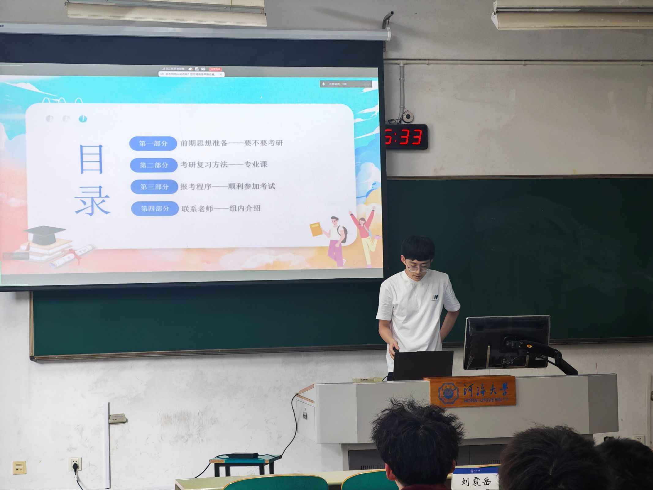 李承杰同学带来了详实的考研全科备考攻略。他从考研时间线入手,系统梳理了政治、英语、数学、电路四门科目的复习节奏与方法。他强调“英语最重要的是背单词”,并推荐掌握高频考点贯穿始终;数学方面坚持“做题 > 看课”,建议严肃模拟、错题复盘;电路则建议报班系统学习,广泛练习近年真题。他还特别提醒同学们保持锻炼、远离干扰、合理休息,坦言“考研是一场马拉松,不要高估自己的毅力,也不要低估自己的实力”